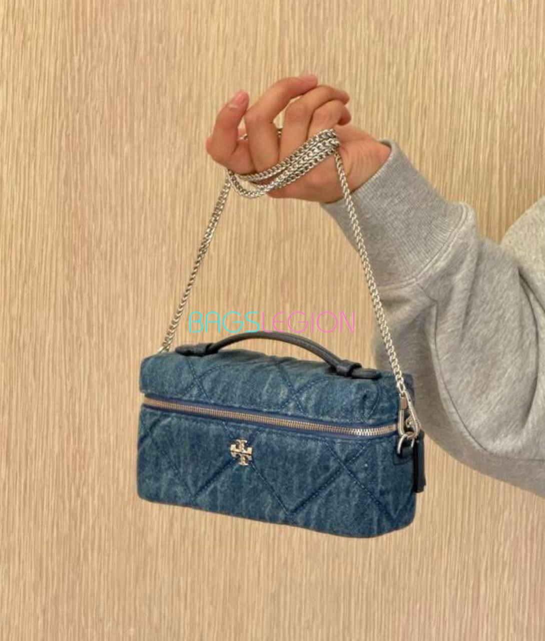Hot Sales ❤️🔥 Tory Burch Kira Diamond Quilt Denim Vanity Case (Preorder)